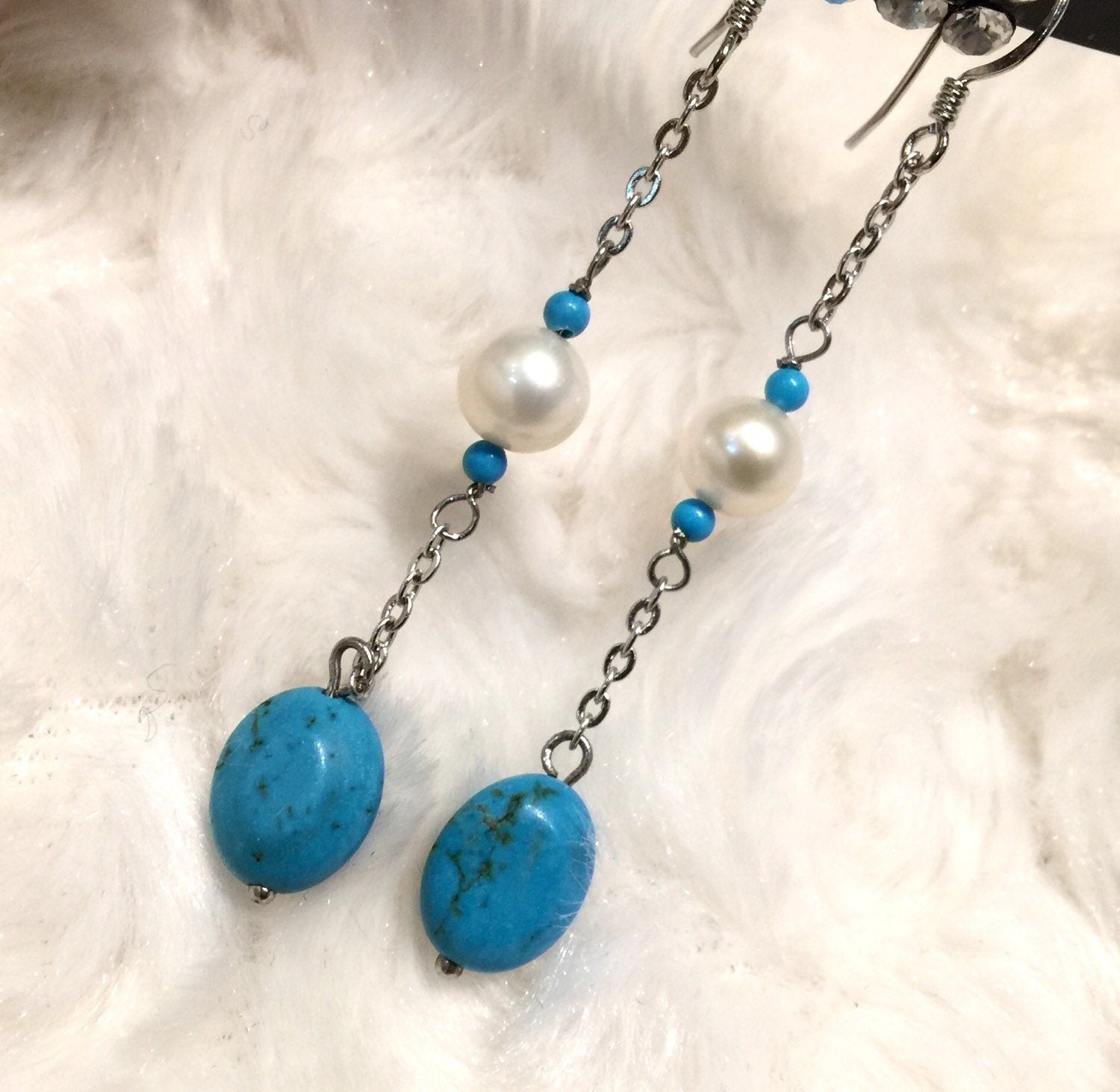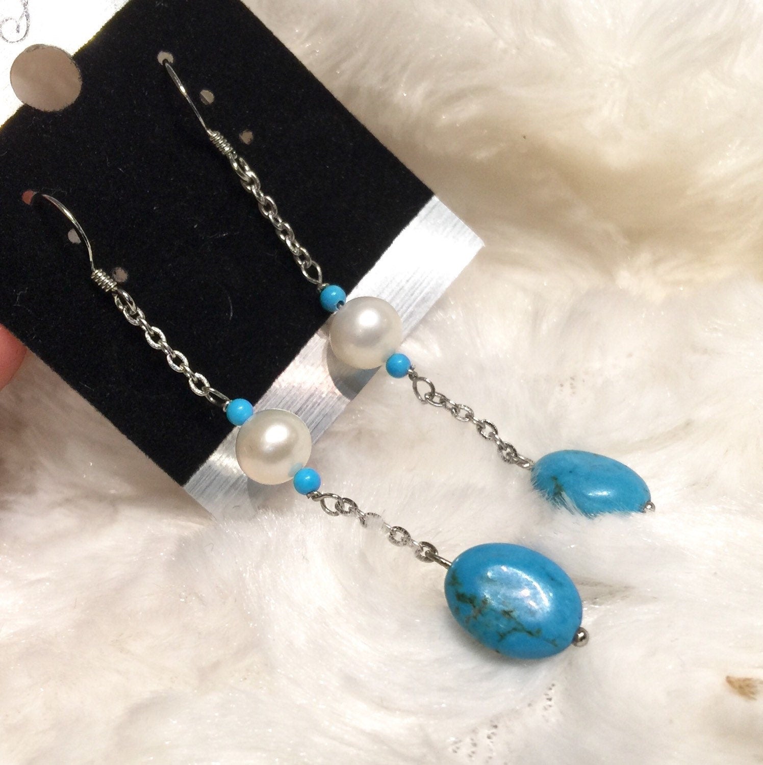 7mm 925 Sterling Silver Round White Freshwater Pearl Dangle Earrings