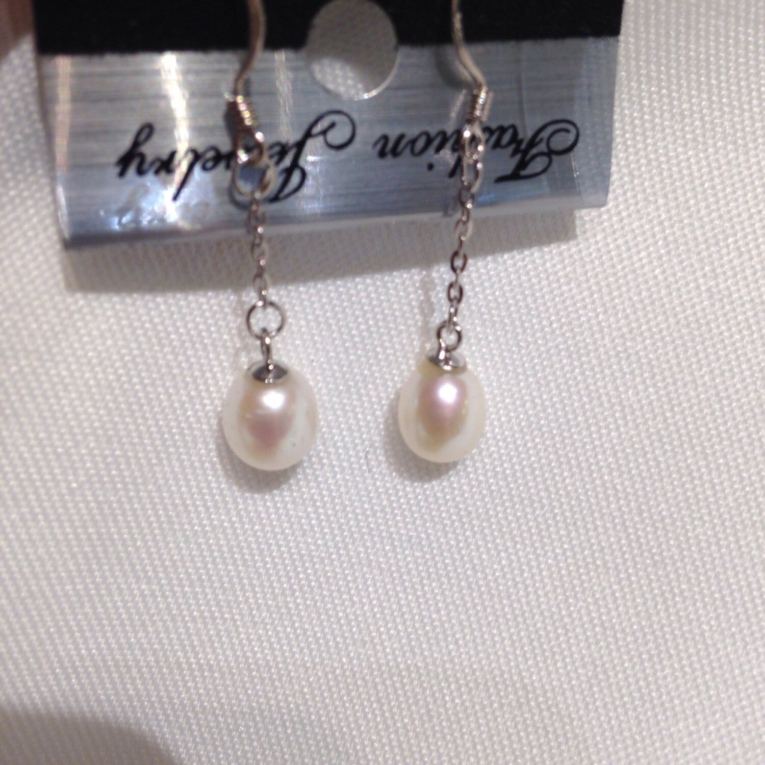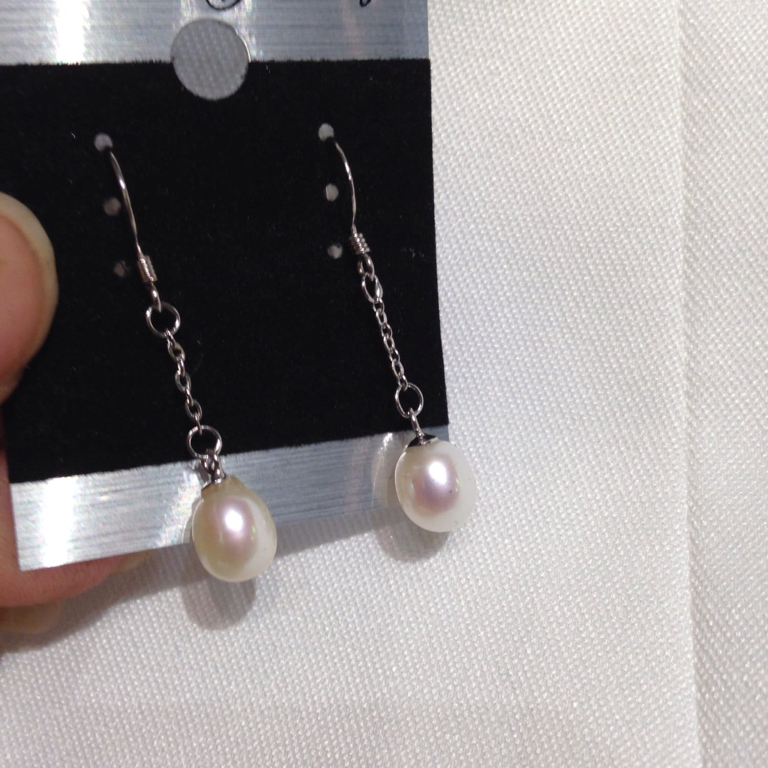 7mmx9mm 925 Sterling Silver Teardrop Ivory White Freshwater Pearl Dangle Earrings