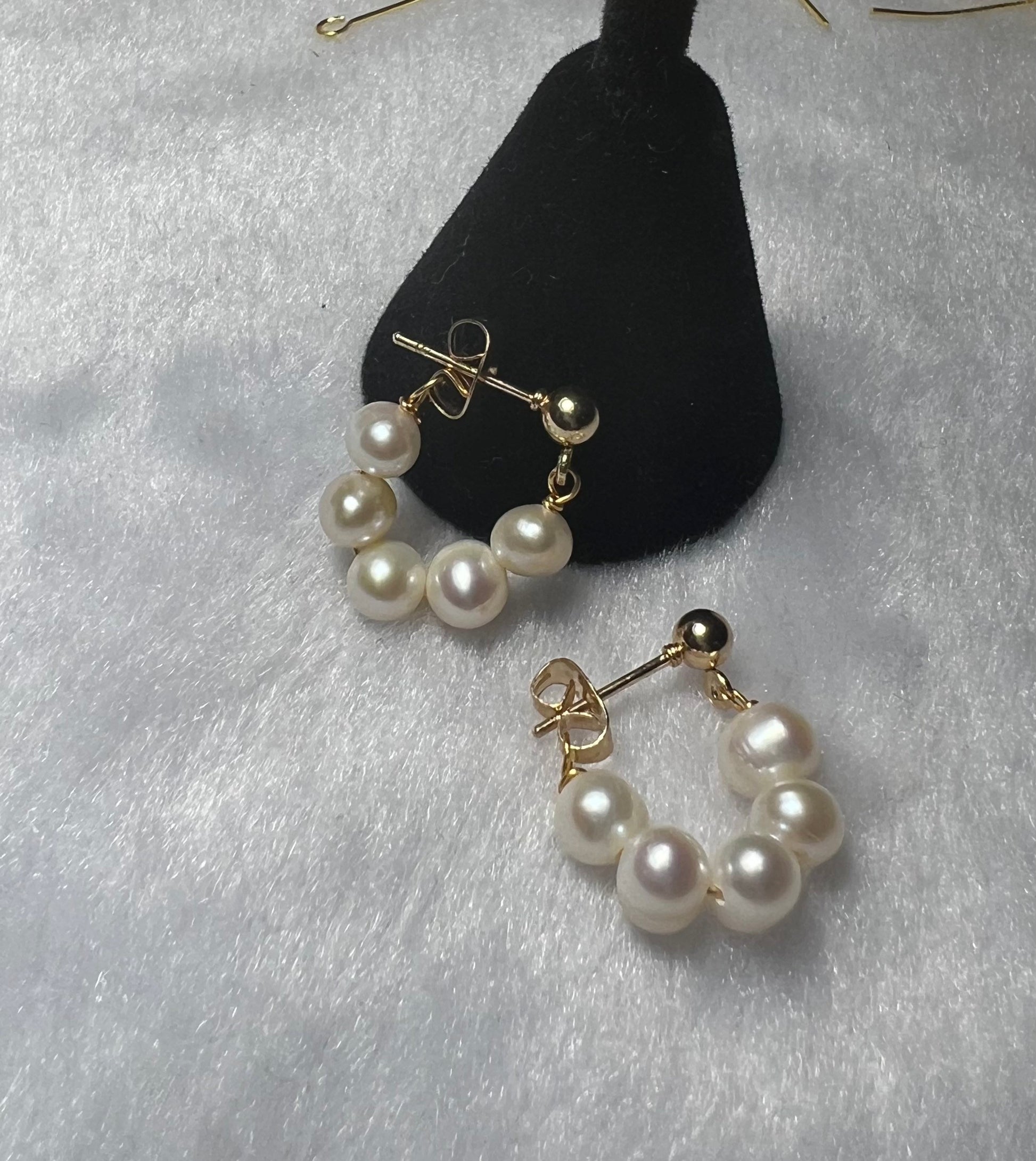 AAA 5-6mm 14k gold plated Hoop White Freshwater Pearl Stud Earring