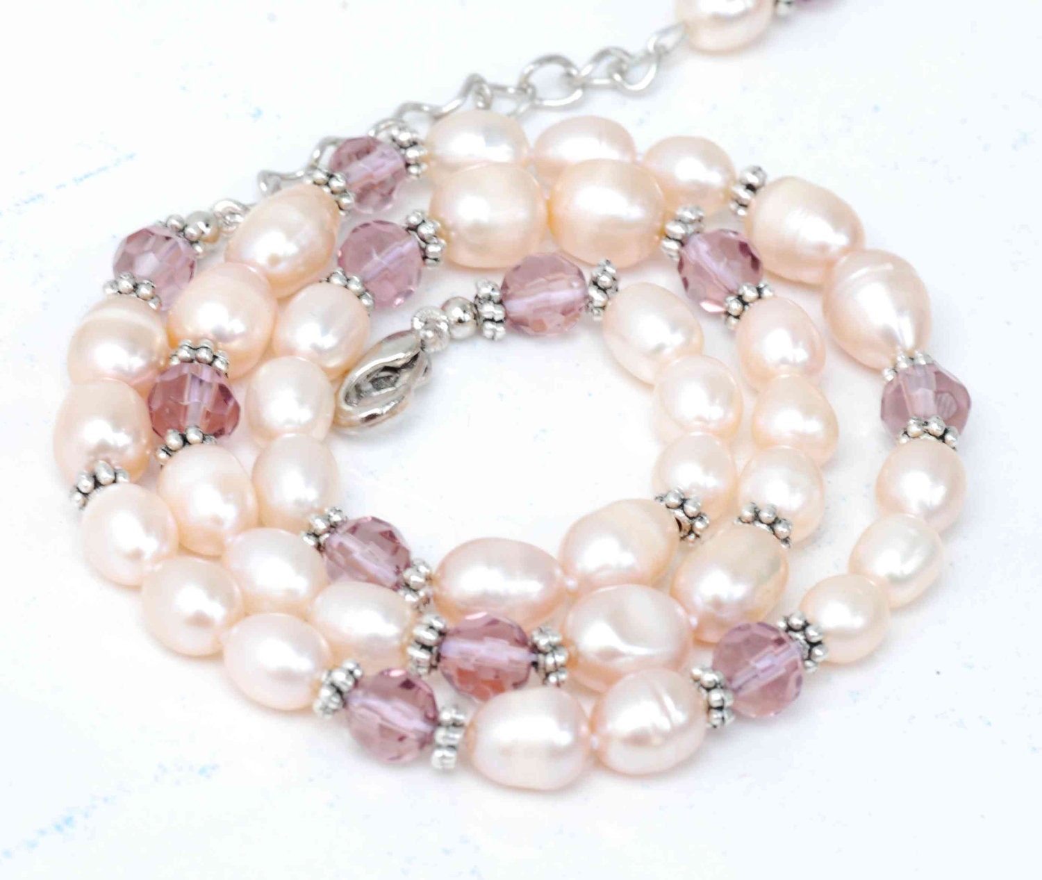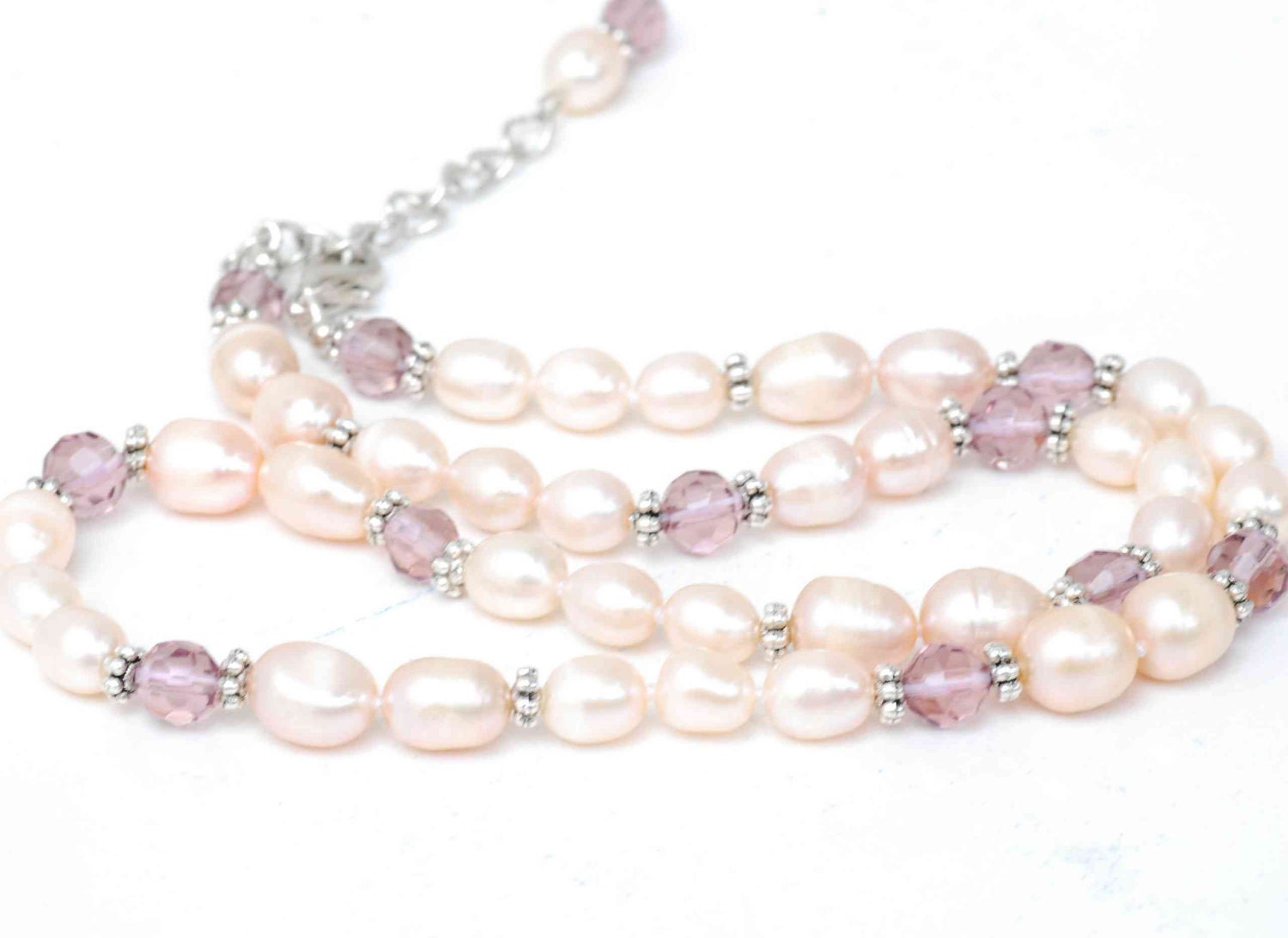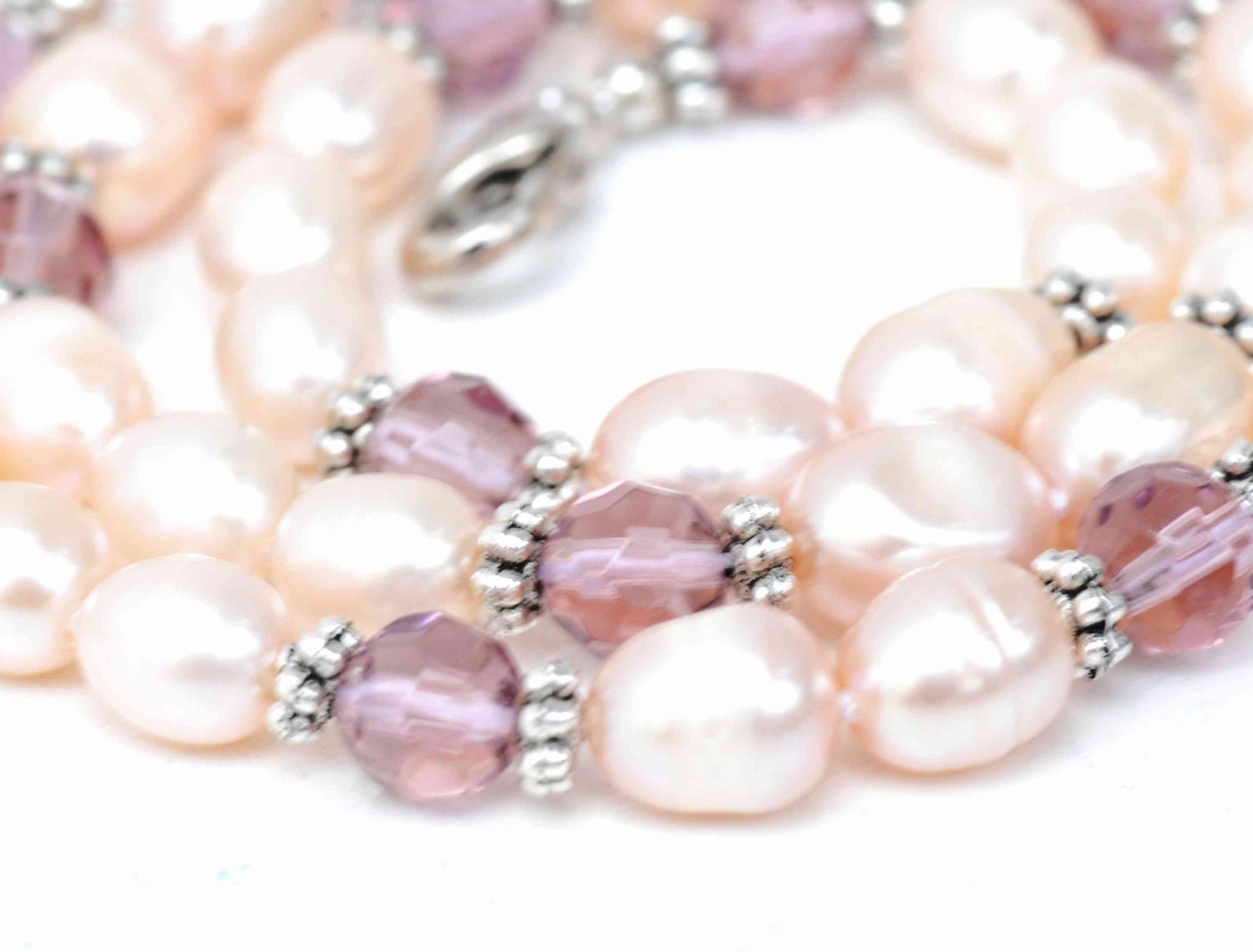 -Color: natural peach or champagne or pink freshwater pearl, with purple crystal