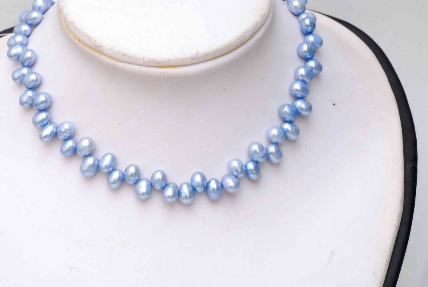 5mmx7mm Top Drill Sky Blue Freshwater Pearl Necklace